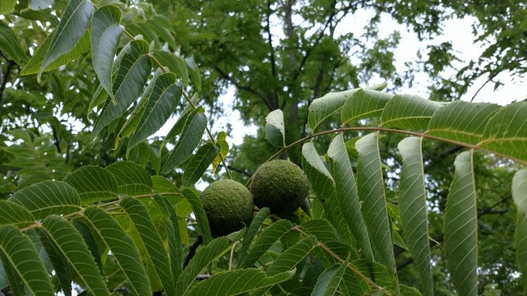 Leaves aren’t the only thing hanging down on this cool but slightly muggy August night, so are the black walnuts.