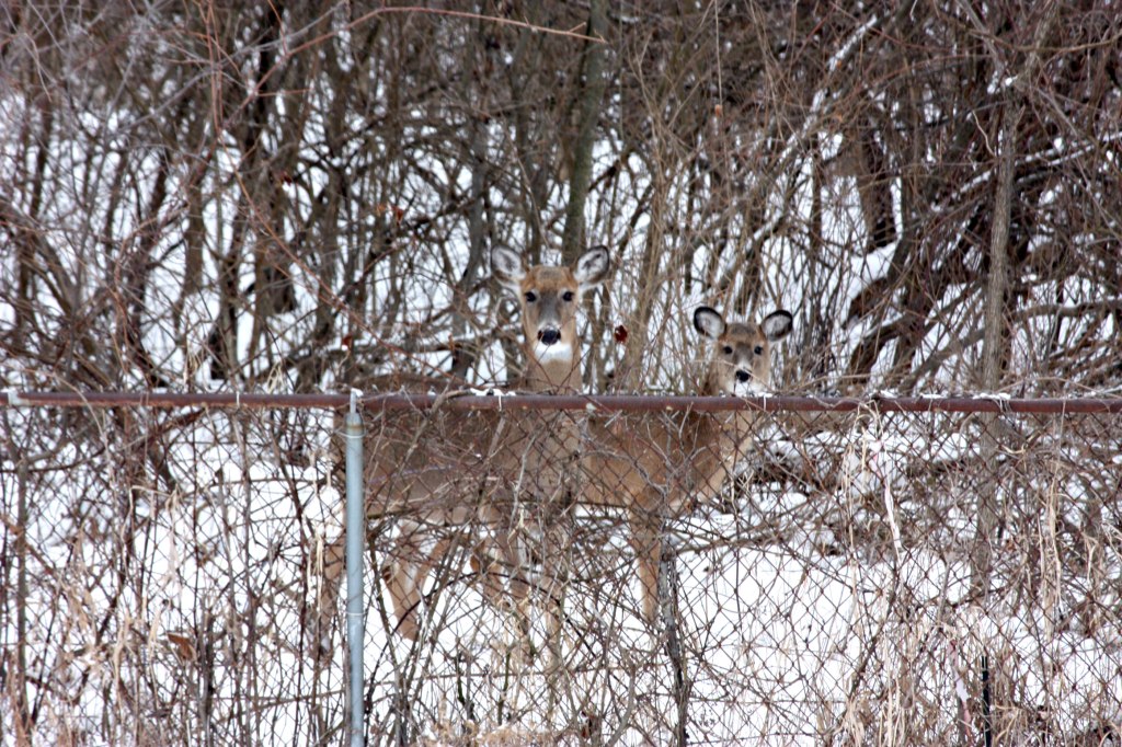 Besides cardinals, deer roam the woods behind my house. These two posed for a photo last year.