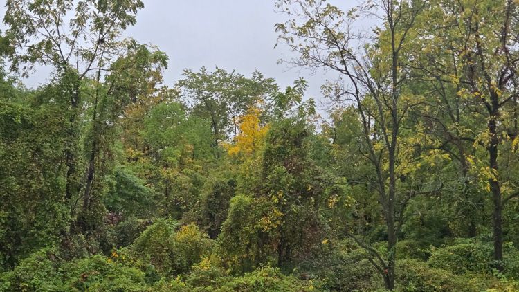 Hopefully, the woods behind my house will have more color next week. The nearly naked trees are black walnut, which the squirrels have stripped.