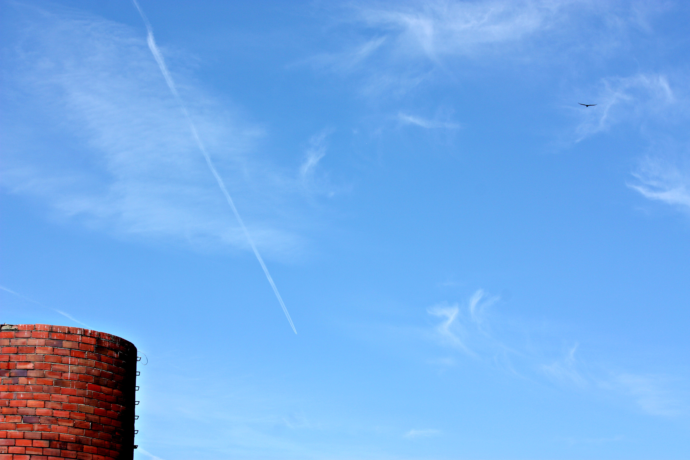 There is a chimney at the entrance and I discovered this picture when I reviewed all the ones I took. I just love the bird and the plane flying high together.